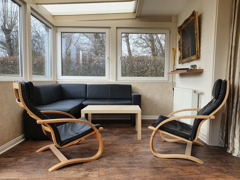 Das geräumige Wohnzimmer geht zum Wintergarten über. Vor dem Kamin auf der Couch haben Sie die Möglichkeit zu entspannen, ob beim Lesen, oder Fernsehen. Ein DVD-Player, sowie eine Spielekonsole (Wii) sind vorhanden, falls das Wetter vielleicht doch mal nicht so mitspielt. Auch finden Sie einige Bücher und Gesellschaftsspiele.